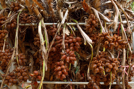 Salak bunch or known as Snake fruit on tree, thin brown peel snake pattern, juicy fruit. Bali,Indonesia.