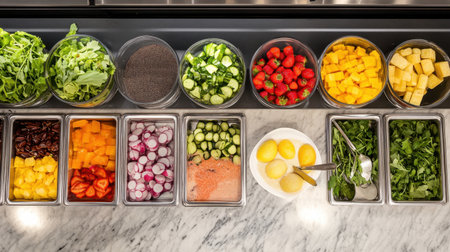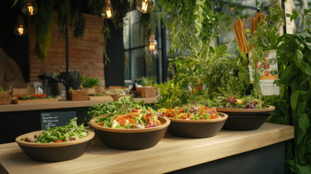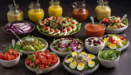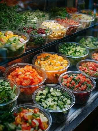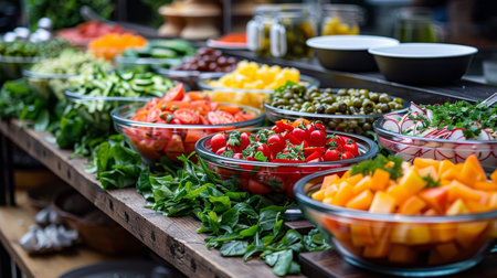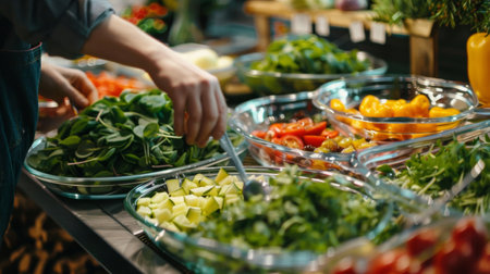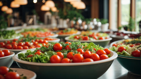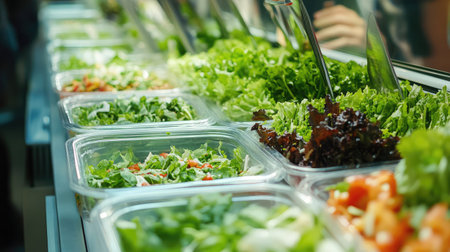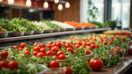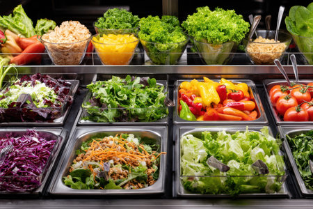 Vibrant and Colorful Salad Bar Featuring Fresh Vegetables, Crisp Greens, and a Variety of Accompaniments Ready for Healthy Eating Enthusiasts