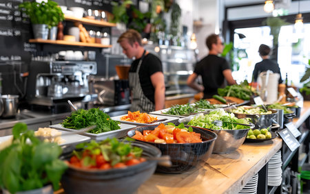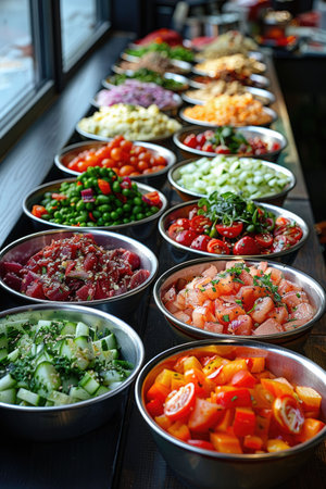 Color Explosion: Restaurant displays varied and inviting salads bar, generative AI
