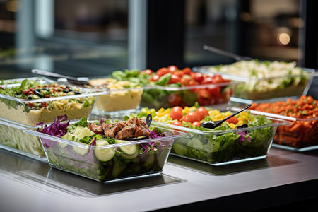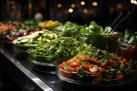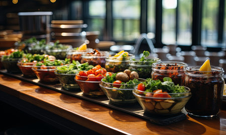 Salad bar buffet from organic farm in plant based concept. Generative AI.