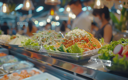 fresh vegetable salad are beautifully placed in a tray for customers to choose, Healthy Food concept