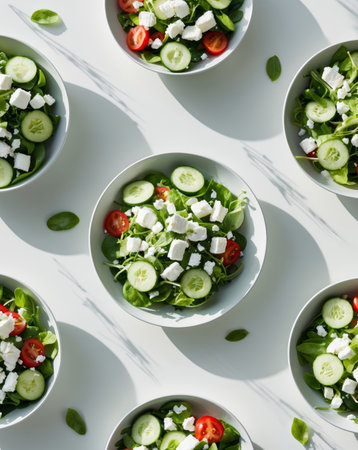 AI Generated. Five Fresh Salads with Feta and Cucumber