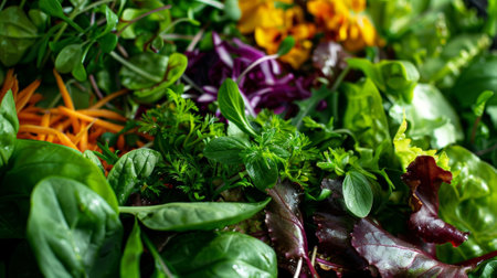 A healthy and nutrientpacked salad featuring an array of wild greens