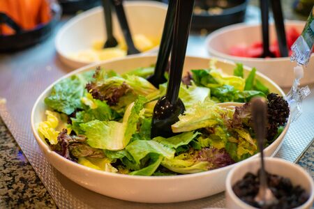 Various vegetable and fruit salad in salad bar shop, Healthy food