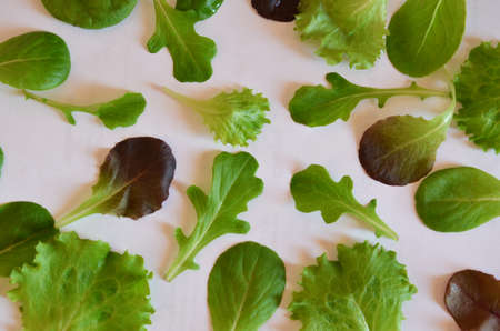 Mixed salad leaves. Healthy food background. Top view with copy space