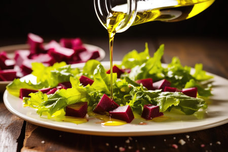 drizzling olive oil over beet salad, created with generative ai