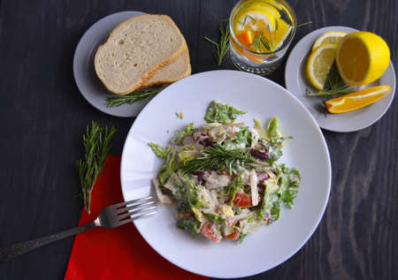 diet food meal. Fresh herb salad for weight loss. Low calorie dish for healthy and fit body
