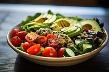 Indulge in a healthy and delicious salad bowl. Perfect for diet enthusiasts. Generative AI masterpiece.