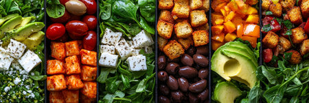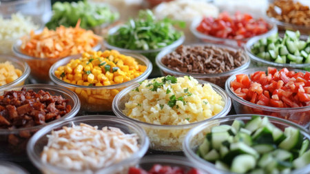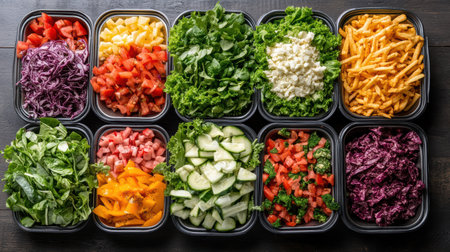 A Fresh salad ingredients arranged in colorful containers for healthy meal