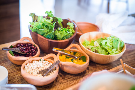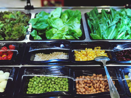 fresh vegetable salad are beautifully placed in a tray for customers to choose, Healthy Food concept