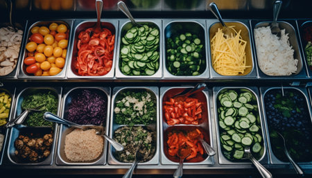 Vibrant and Colorful Salad Bar Featuring Fresh Vegetables, Crisp Greens, and a Variety of Accompaniments Ready for Healthy Eating Enthusiasts