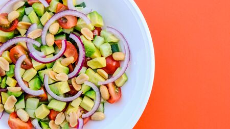 Fresh Vegetarian Summer Avocado and Peanut Salad With Cherry Tomatoes and Cucumber
