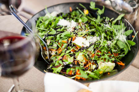 juicy caesar salad in the festive table. festive table