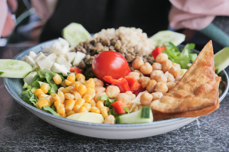 Fresh vegetables and cereal salad. Healthy and Vegetarian Meal