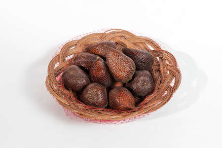 Salak ( Salacca zalacca) fruit or known as snake fruit on a wicker plate with a white background. isolated