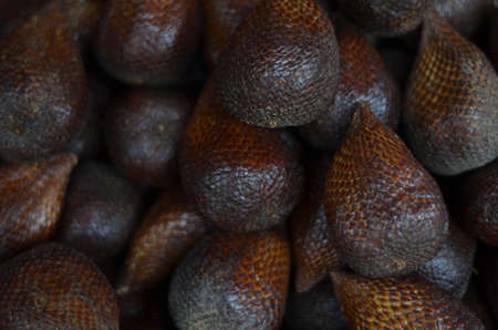 Close up view of Salak or snake fruit or Salacca zalacca. A tropical fruit from southeast asia with skin like an snake. close up view in the market.