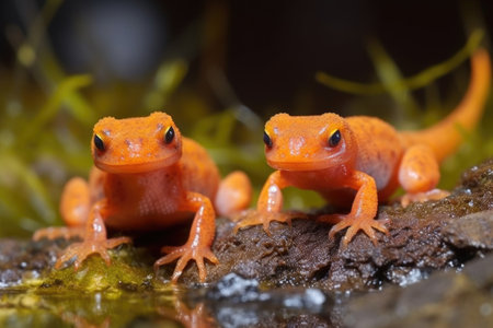 salamander perched on a mossy rock in a rainforest, created with generative ai