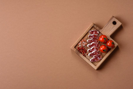 AI Generated. Slices of Salami on Wooden Cutting Board for Charcuterie Display