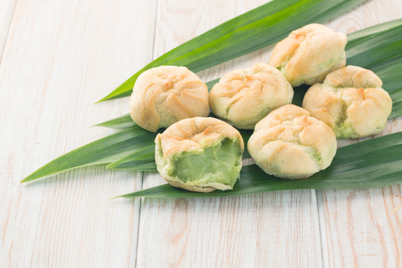 Fresh bread and pandan custard.With Clipping Path.