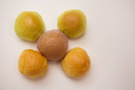 bread stuffed orange custard arranging on white background