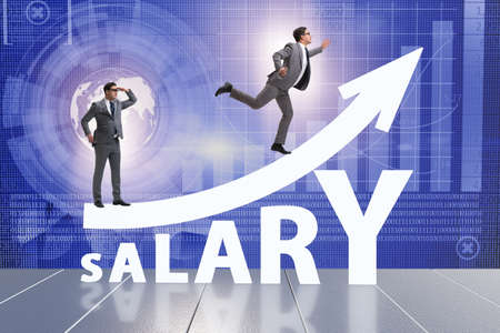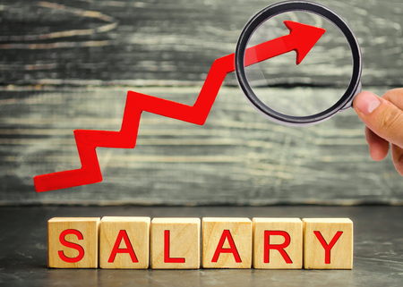 The inscription salary and the red arrow up. increase of salary, wage rates. promotion, career growth. raising the standard of living. increase profits and family budget. wealth concept