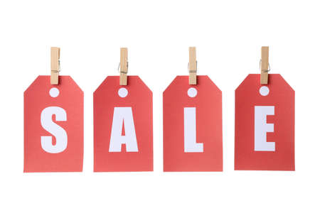 Inscription Sale on price tags isolated on white background