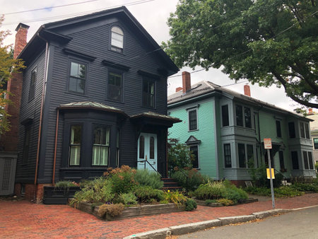 Colored and historic houses in Portsmouth, New Hampshire, USA.