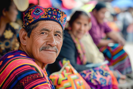 Portrait of three smiling south American sellers wearing colorful traditional clothes