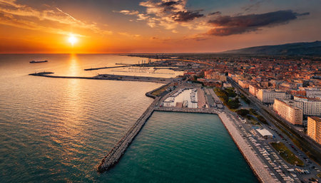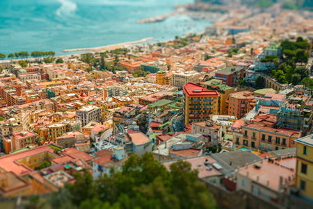 Generative AI : Aerial view of Salerno downtown along the coast Campania Italy