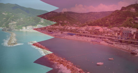 Aerial View of city, Italy with mountain and Tyrrhenian Sea