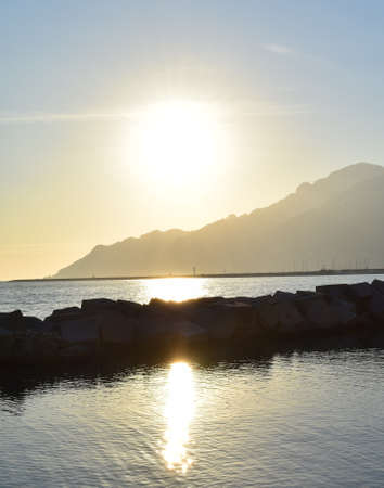 Sunset on the sea in the town of Sorrento Italy