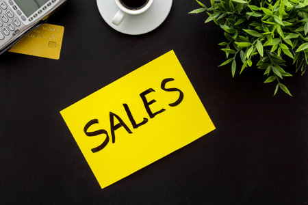 sale written on leaflets on a wooden black background