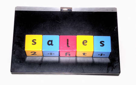 Concept word forming on wooden cube on white background - sales
