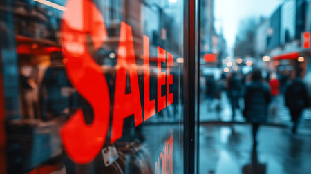Eye-catching sale announcement in a shopfront with stylish attire.
