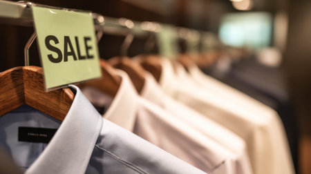 Eye-catching sale announcement in a shopfront with stylish attire.