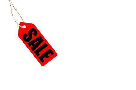 White 'SALE' Text on a Red Square Paper Note. White Background