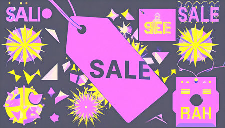 Bright and colorful sale tags arranged on a gradient background, ideal for promotional marketing, attracting consumers to discounts and offers.