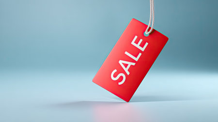 A vibrant red sale tag suspended against a soft blue background, perfect for promotional materials, advertisements, and retail marketing campaigns.
