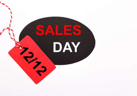 On a light background there are price tags. One Day Sale Concept 12.12. Red and black price tags sale 12.12 Trading concept.
