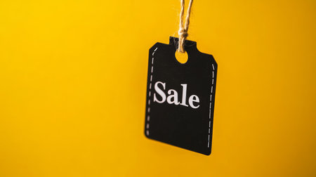 Close-up of a black sale tag on a bright yellow background, ideal for Black Friday.