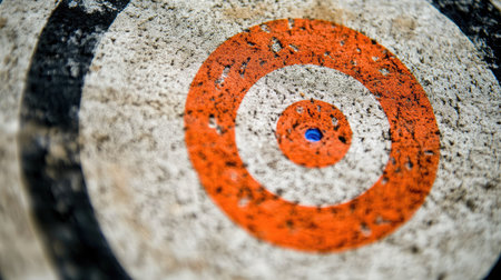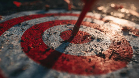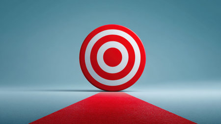 A striking red and white circular bullseye target stands prominently against a serene blue backdrop, with a vivid red pathway illustrating direction and focus for success.
