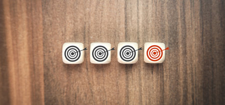 Triangles shape and target symbols on wooden blocks. Goal setting in business concept.