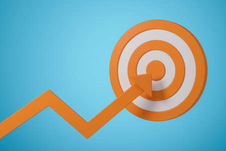Line arrow and goal target of orange dart board. Concept of strategy and achievement. Successful steps towards aim. 3D rendering