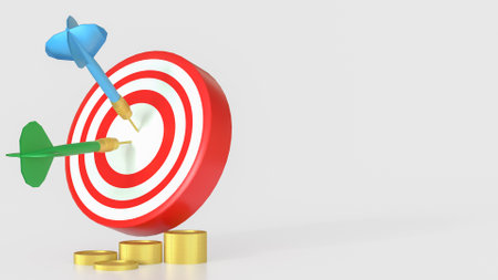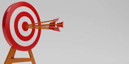 3D render Arrow hit the center of the target on a dartboard on white background. Minimal target with arrows. Business finance target concept. 3d rendering illustration.