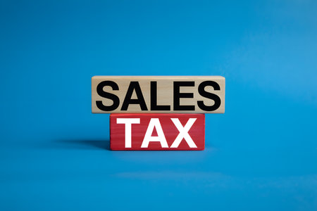 Sales Tax Visual Concept on Wooden Blocks for Business or Media. Minimalist Wooden Blocks Composition.