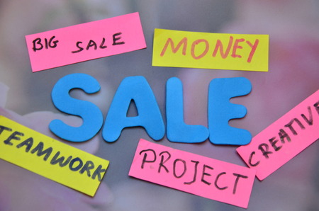 Brightly colored blocks spell sale on a red surface, encouraging shoppers to take advantage of discounts and offers.