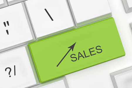 Computer Keyboard With The Word Sales And An Arrow On A Green Key As A Hot Button, 3d illustration