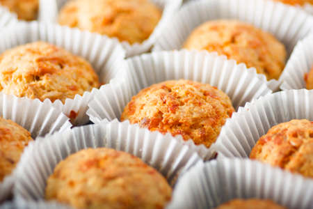 Homemade cheese muffins in paper cupcake cases. Shallow focus. close-up