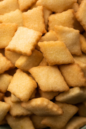 macro close up rounded salty cookies, selective focus