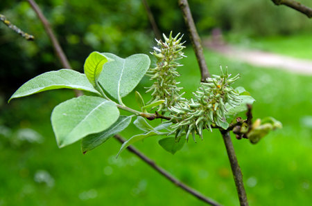 Inflorescence of a willow species Salix phylicifolia from Northern Europe.